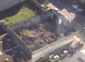 Além do desabamento do telhado, 11 carros foram destruídos pelas chamas.