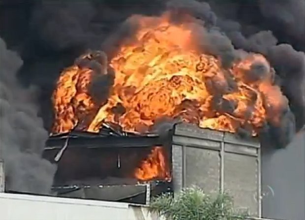 O incêndio se concentrou na parte dos fundos de um dos galpões. Além da movimentação dos bombeiros, que chegavam a todo momento com caminhões carregados de água, era possível ver muitos funcionários correndo pelo pátio.