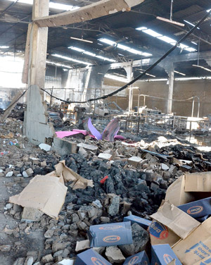A fábrica de calçado ficou quase totalmente destruída com o fogo