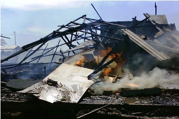 Um incêndio de grandes proporções na manhã desta segunda-feira, 11, destruiu um dos alojamentos da empresa Toshiba no município de Chupinguaia (RO).