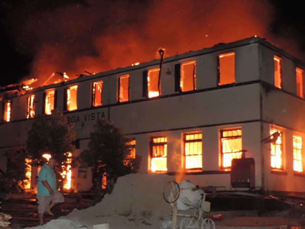 Nove pessoas inalaram fumaça e foram atendidas no hospital da cidade. Fogo começou por volta das 21h30 e foi controlado após mais de 2h.