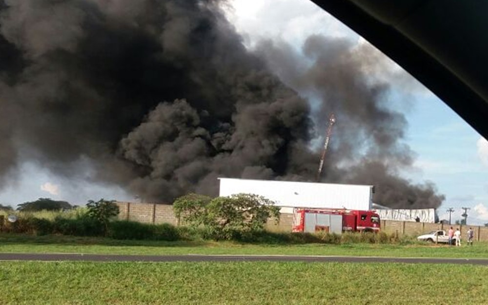 Fumaça preta podia ser vista de longe. Incêndio atingiu um local isolado da fábrica e, de acordo com os bombeiros, ninguém se feriu no acidente.
