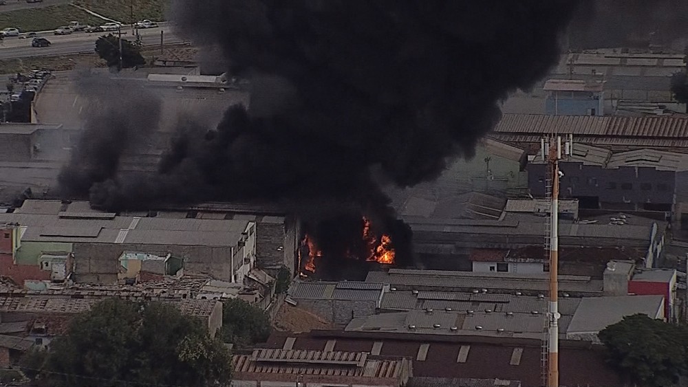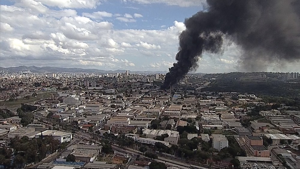 O Corpo de Bombeiros combateu um incêndio, neste domingo (23), no bairro São Francisco, na Região da Pampulha, em Belo Horizonte. De acordo com a corporação, o fogo começou, no início da tarde, em um galpão, localizado na Rua Major Delfino de Paula, onde funciona uma empresa que armazena óleo lubrificante.