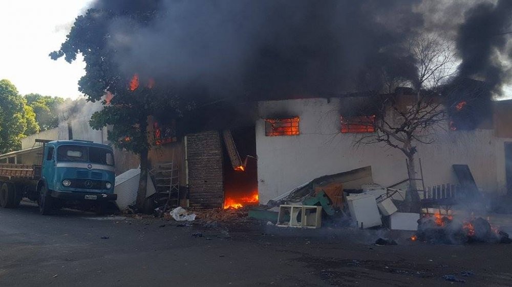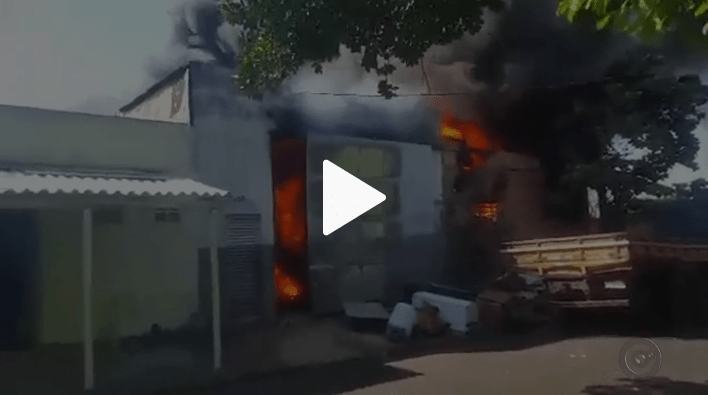 Um incêndio destruiu um depósito de uma fábrica de embalagens na Rua Domingos Povineli, na Vila Simões, em Ibitinga (SP), na manhã desta terça-feira (25).