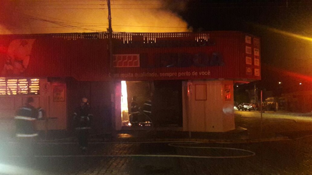 O teto do estabelecimento chegou a cair devido ao incêndio. A corporação contou com o apoio de água de viaturas da região no combate às chamas no supermercado.