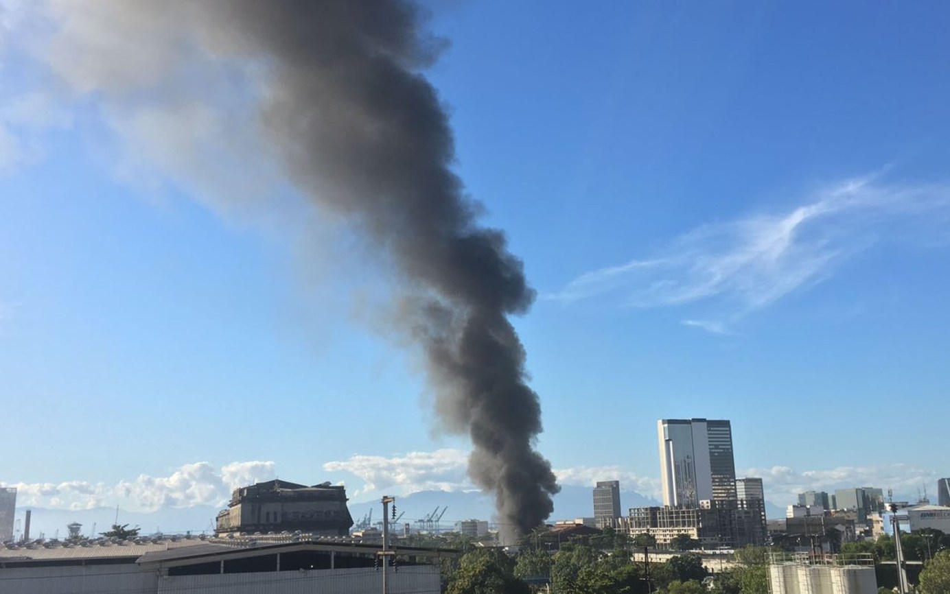 Incêndio de grandes proporções atinge galpão na Zona Portuária do Rio