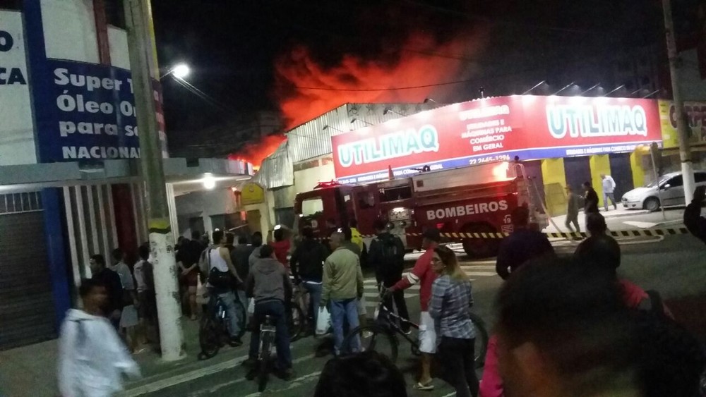 Um incêndio atinge pelo menos uma loja no comércio da Avenida Júlia Kubitschek, em Cabo Frio, Região dos Lagos do Rio, na noite desta terça-feira (22).