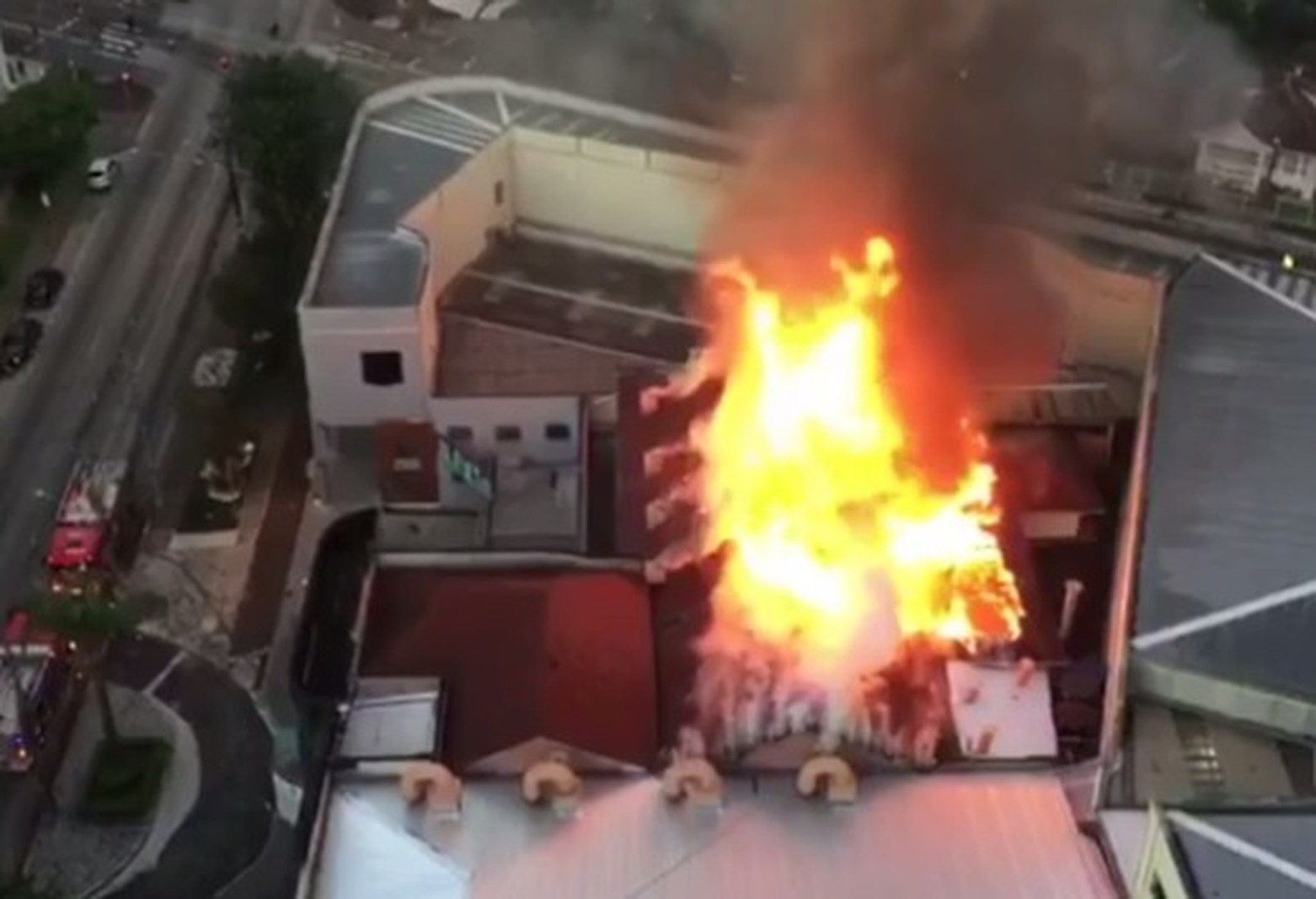 Um incêndio de grandes proporções atingiu o prédio da Sociedade Internacional Água Verde, em Curitiba, por volta das 6h desta terça-feira (7), no bairro Batel.