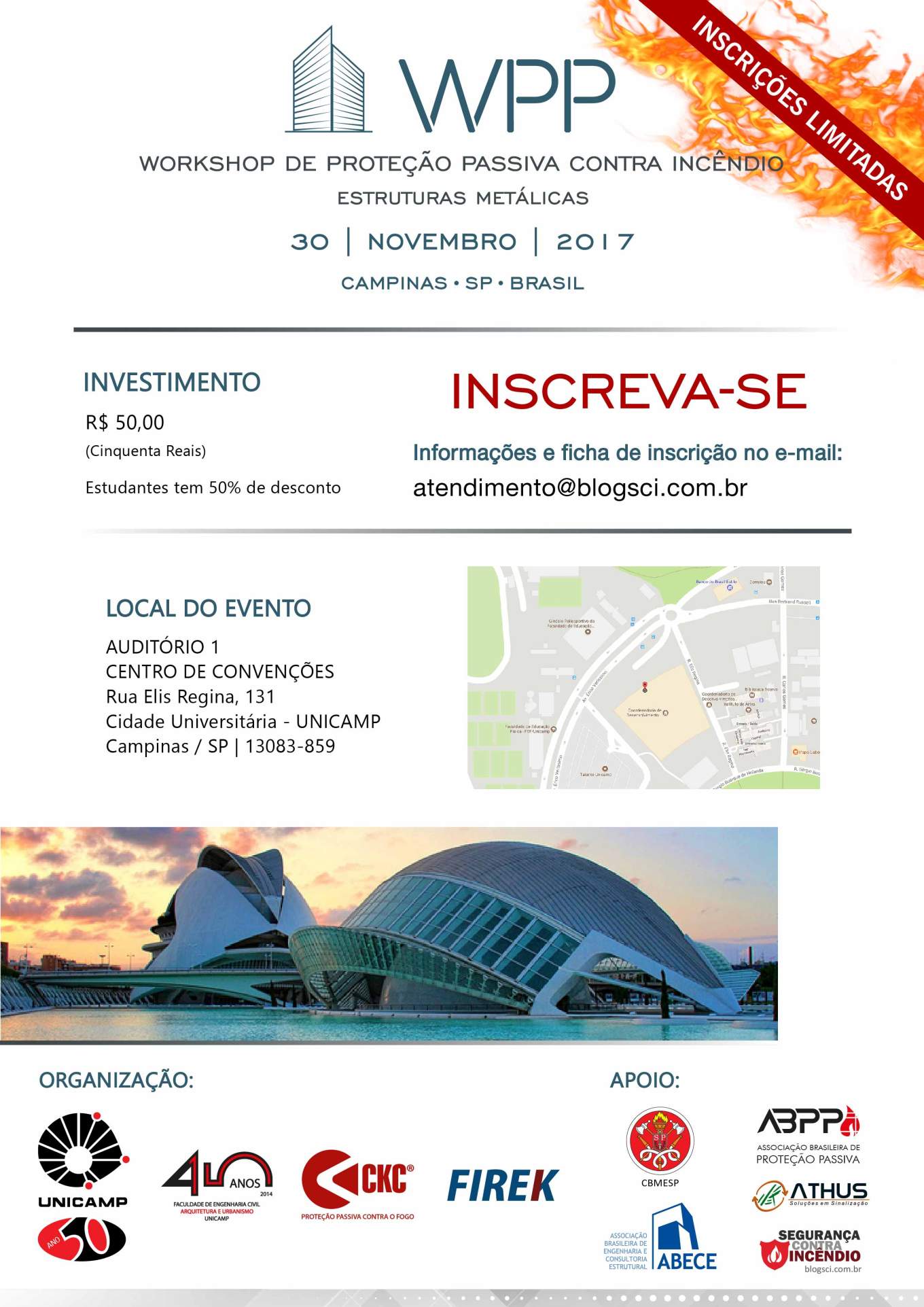Venha conhecer a nova era da Proteção Passiva Contra Incêndio de Estruturas Metálicas. Participe do Primeiro WPP – FEC/Unicamp 2017.