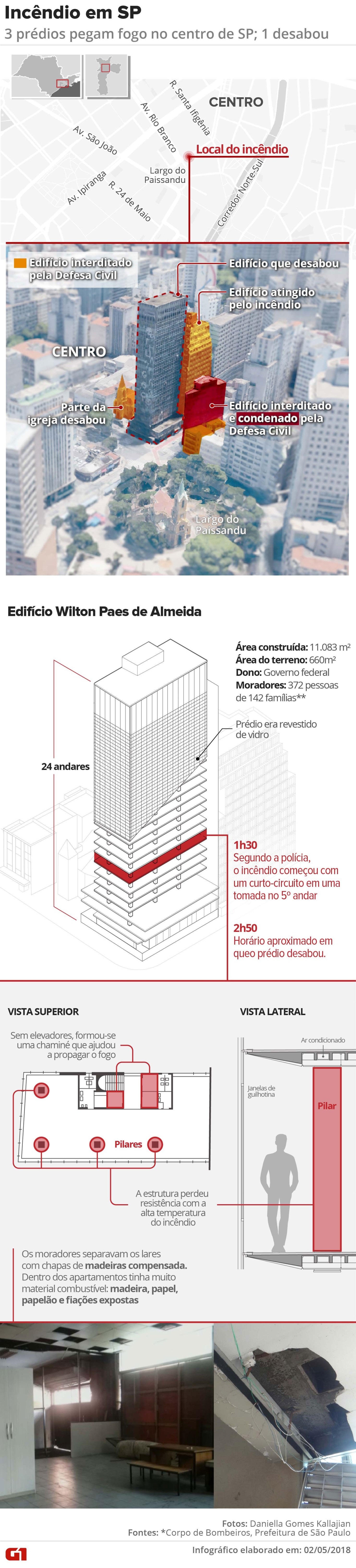 Incêndio em prédio de SP foi causado por curto-circuito em tomada no 5º andar, diz secretário