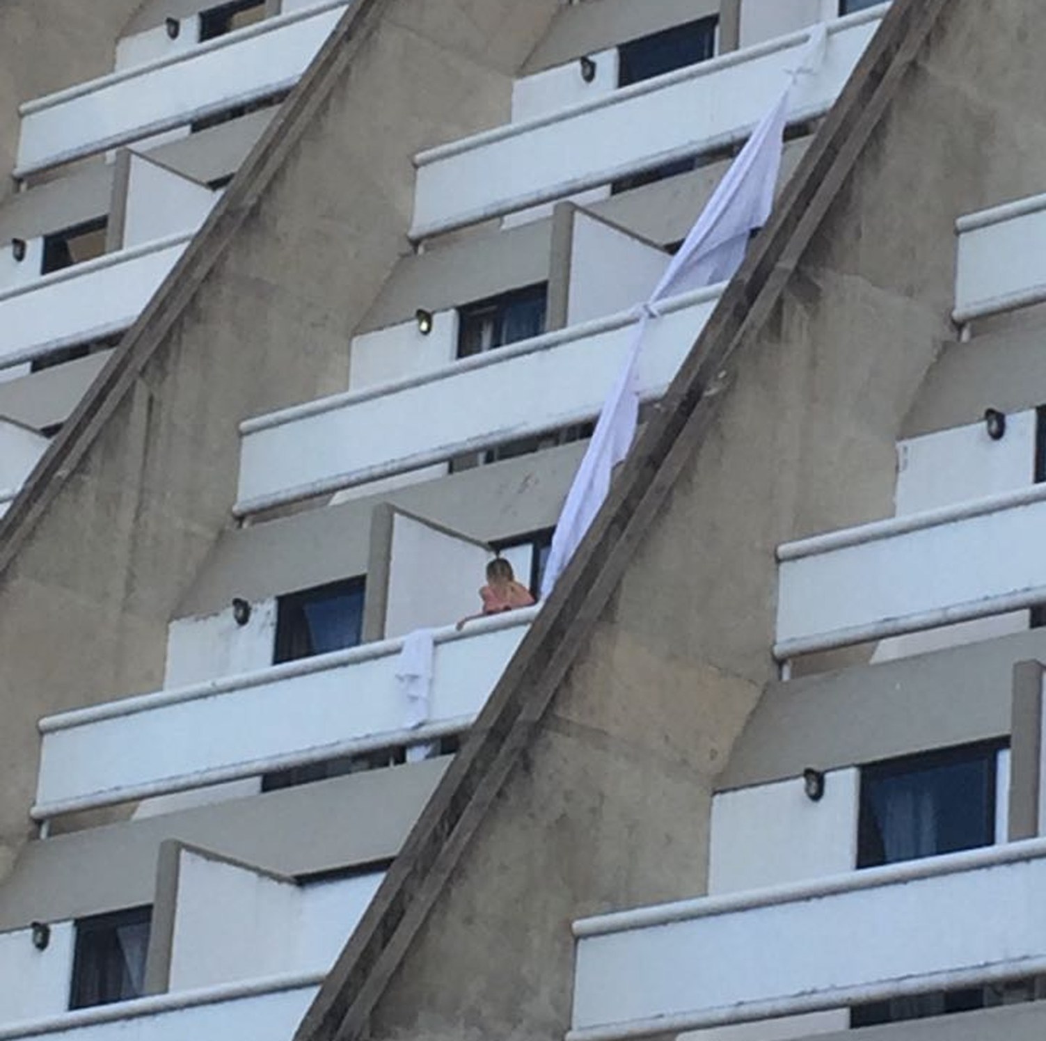 A hóspede Micheline Sarquis estava na piscina e iria descer para o 4º andar quando ouviu a explosão e viu as funcionárias do hotel descendo. “Quando olhei o último andar estava pegando fogo”, contou
