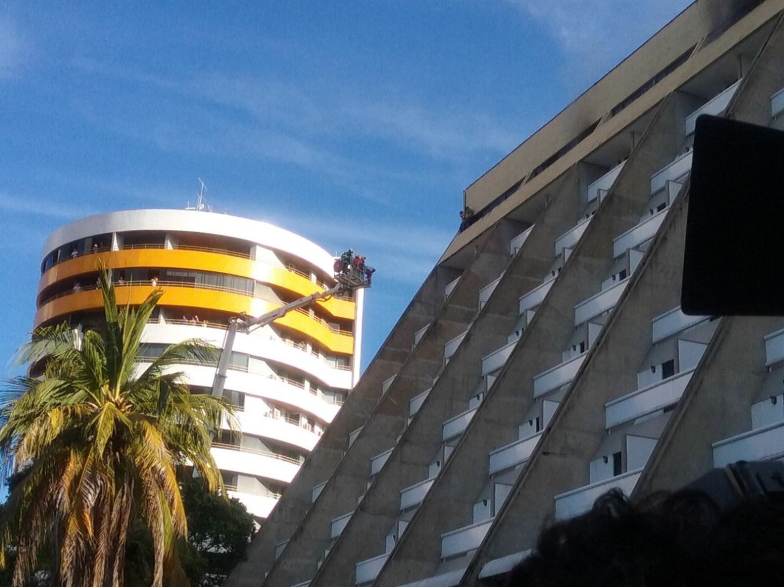 Funcionários e hóspedes ficaram presos no 4º e 5º andar do hotel. O Corpo de Bombeiros ajudou na retirada dos sobreviventes e ainda não começou a apagar o fogo, que atingiu também a parte de trás do prédio.