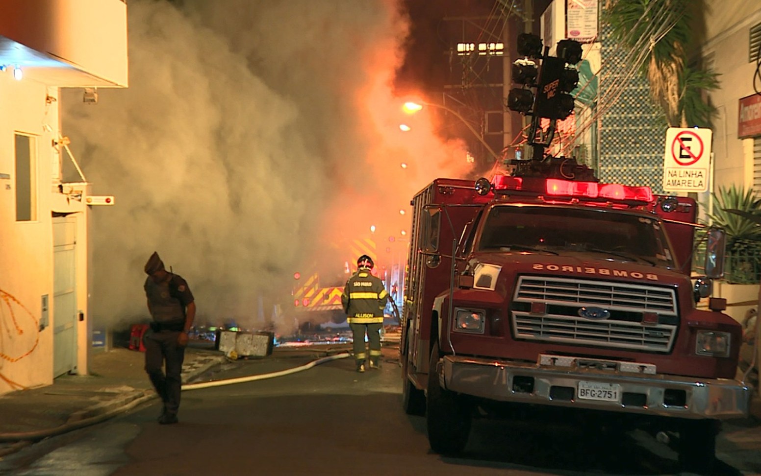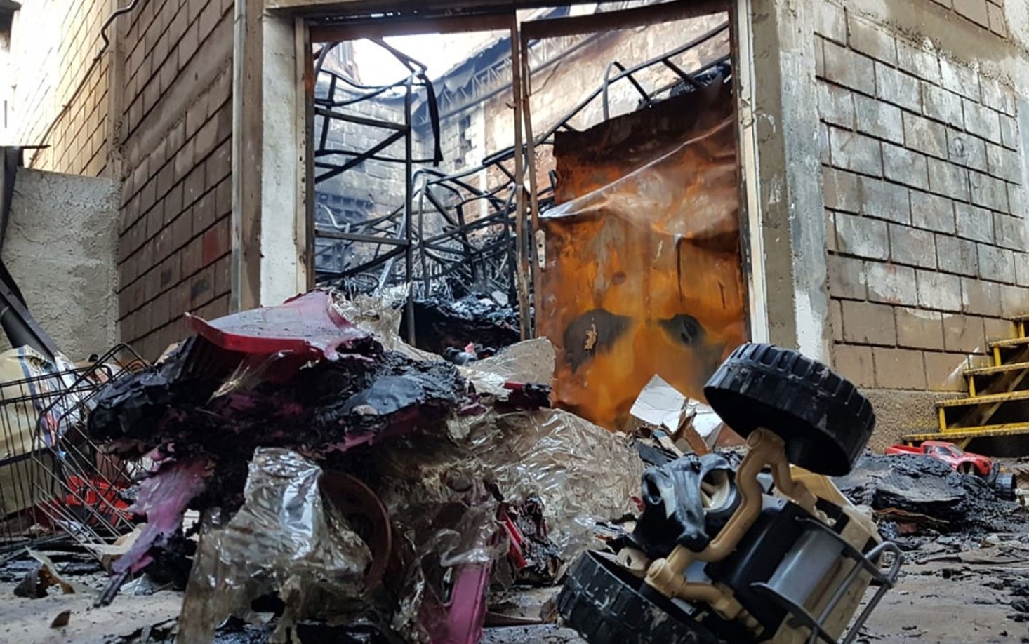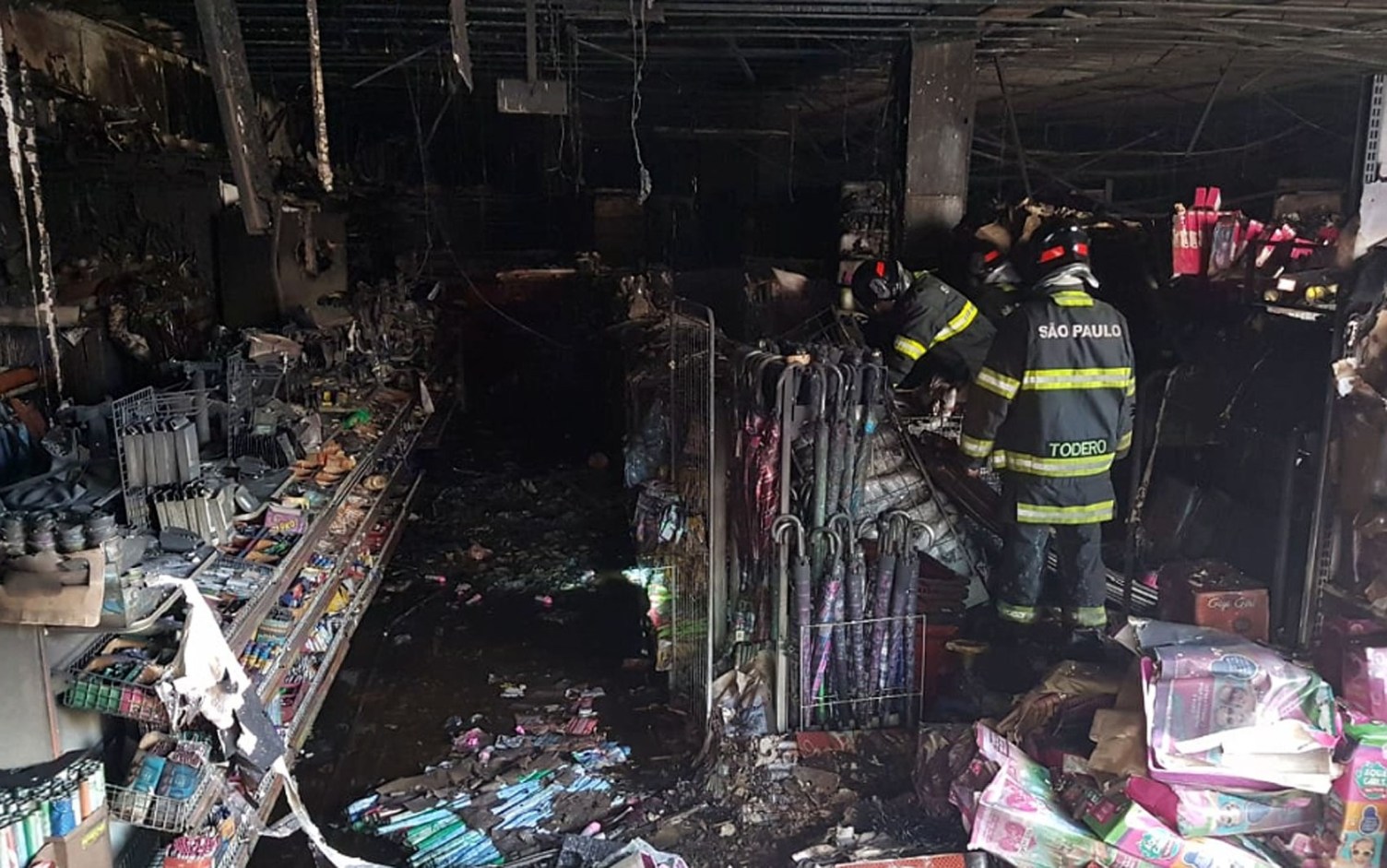 As chamas atingiram material tóxico, como plástico, brinquedos e enfeites de Natal. Só bombeiros com equipamento de proteção respiratória conseguiram entrar nos locais com fogo.