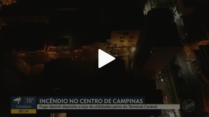 Uma loja de utilidades domésticas e dois depósitos anexos foram atingidos por um incêndio entre a noite de terça-feira (30) e a madrugada desta quarta (31) no Centro de Campinas (SP). Ninguém ficou ferido.