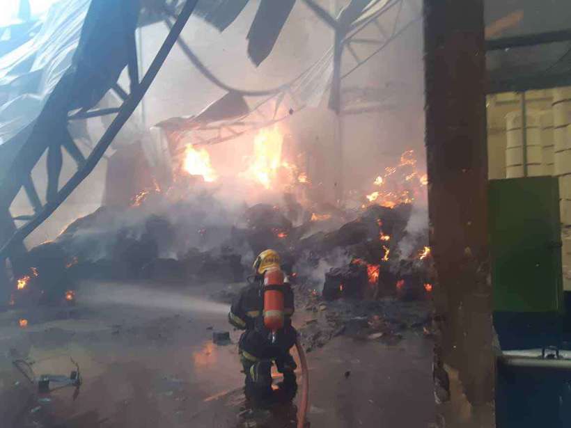 Bombeiros combatem incêndio que destrói galpão em Carmópolis de Minas