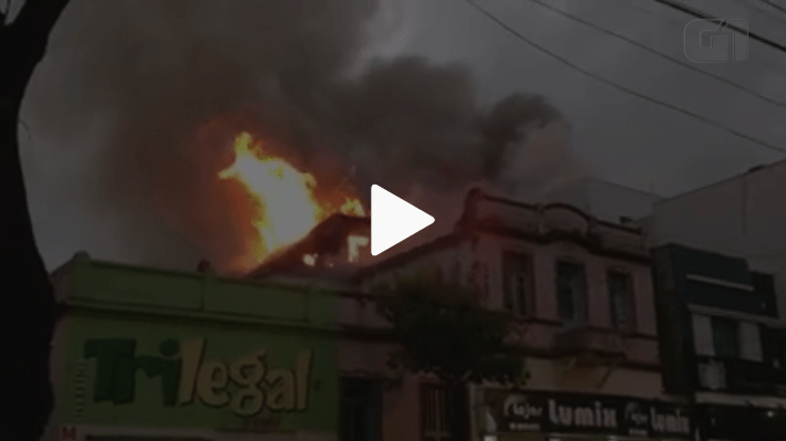 Vídeo mostra chamas no prédio na noite de sábado (19). Local foi isolado e ninguém ficou ferido.