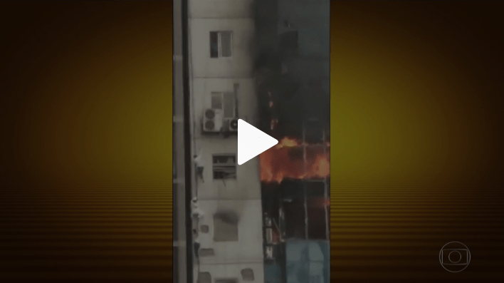 Um vídeo divulgado no Twitter mostra pessoas deixando o prédios com a ajuda de uma corda. Uma delas cai. Testemunhas disseram que ela não resistiu.
