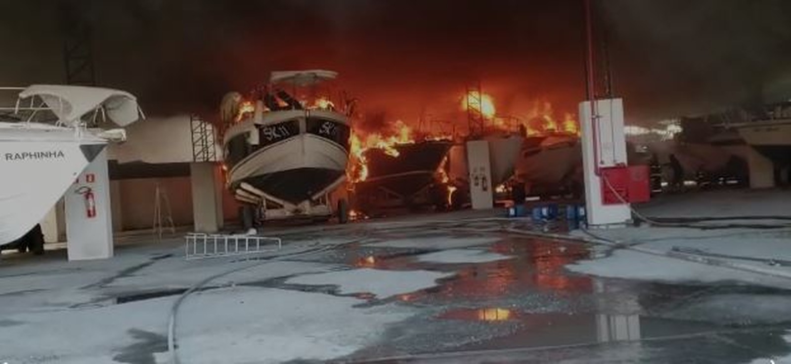Incêndio atinge marina e destrói cinco barcos de luxo em SP