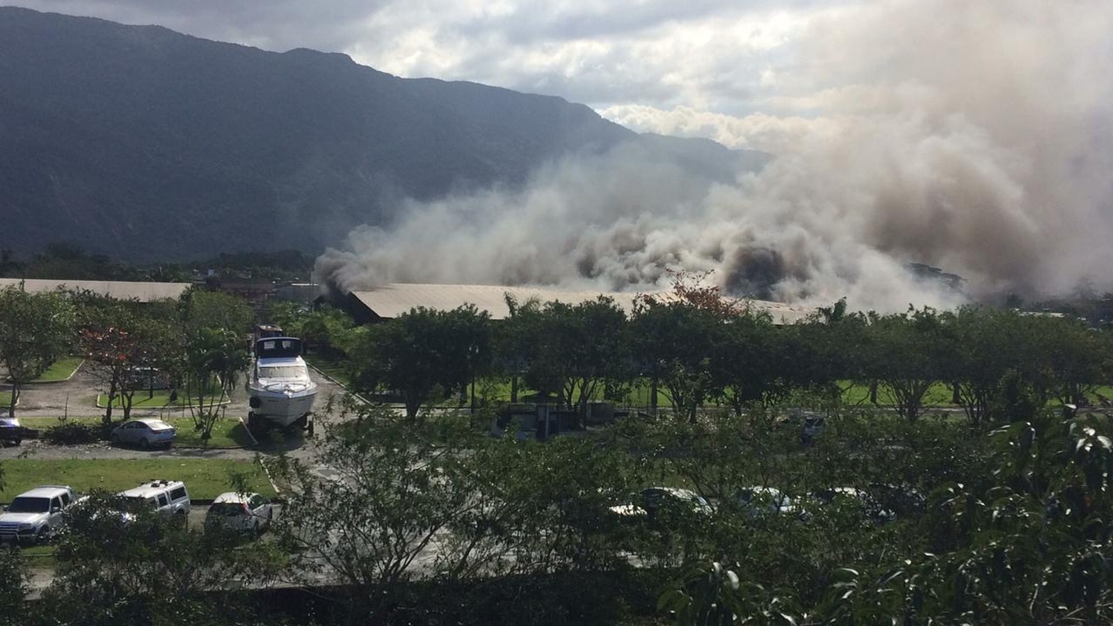 Fogo começou por volta das 9h30 na Marina do Forte, localizada no bairro Jardim Vicente de Carvalho II, em Bertioga.