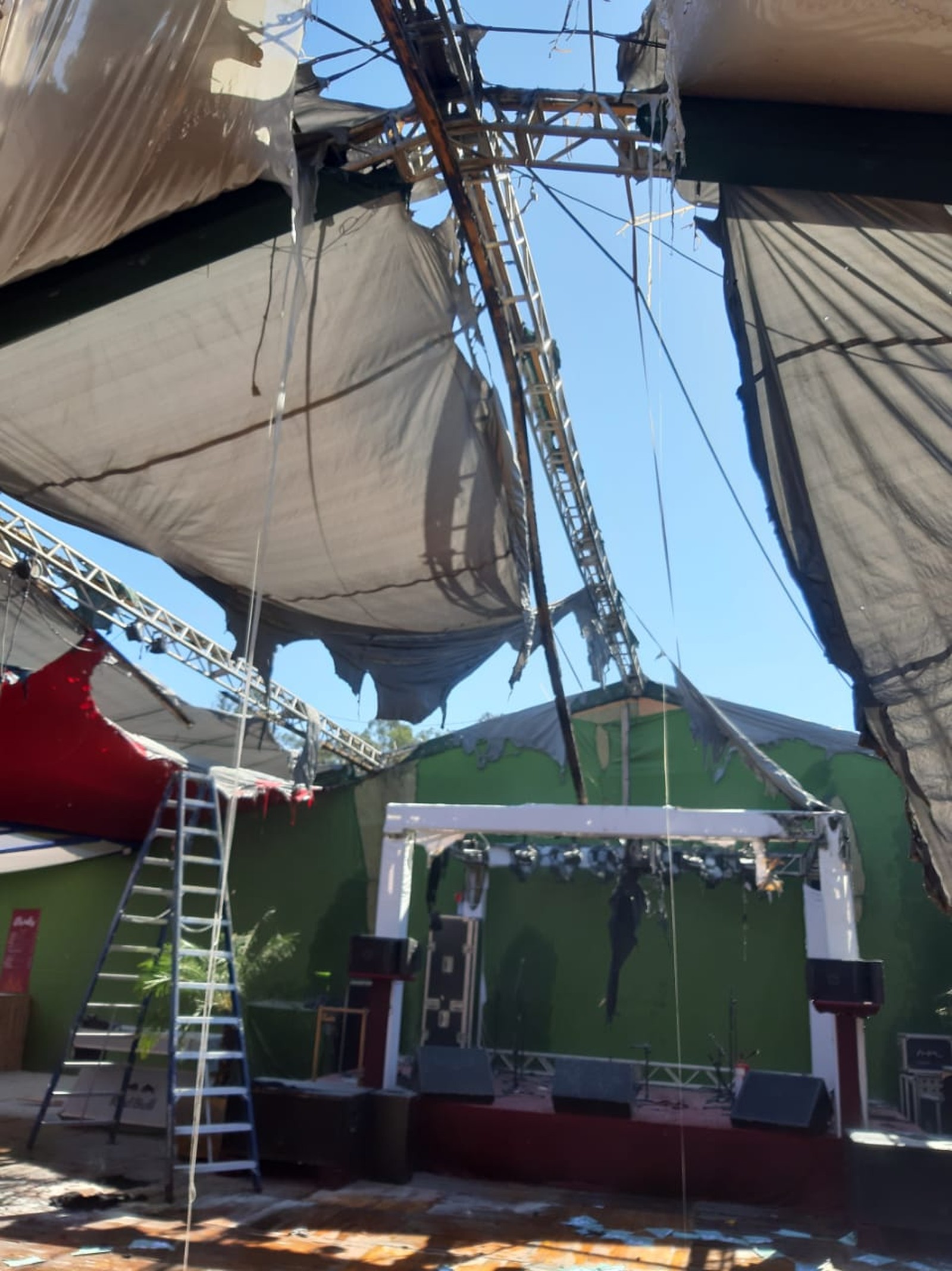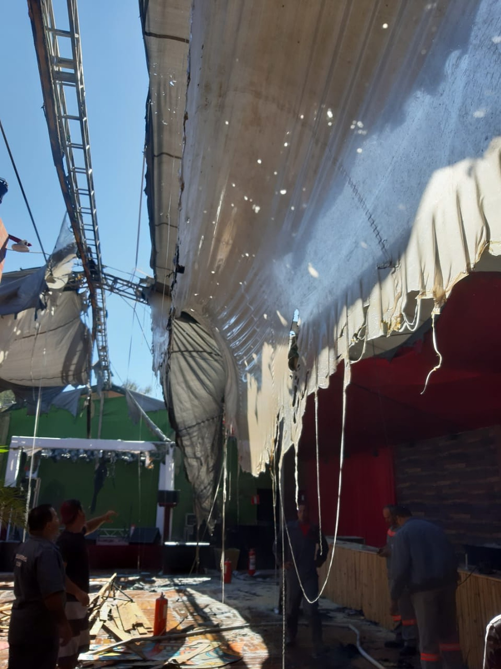 Ainda de acordo com os militares, as chamas estavam altas, se alastraram rapidamente e atingiram uma estrutura de madeira em obra que estava sendo feita no teto.