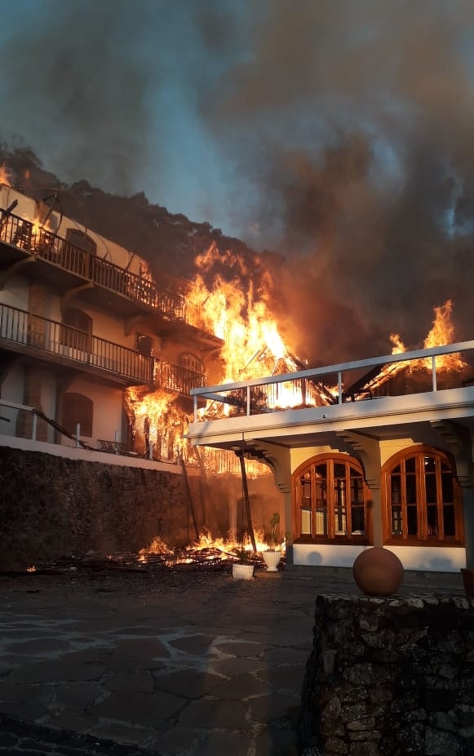Após mais de 3h, bombeiros controlam incêndio que destruiu hotel na Serra da Mantiqueira