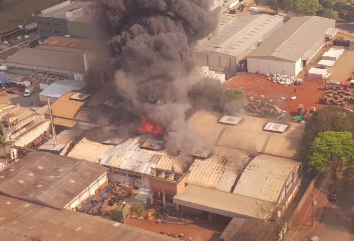 Incêndio atinge fábrica de tintas às margens da rodovia BR-459 em Piquete, SP