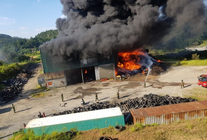Incêndio em fábrica de pneus já dura mais de 15 horas em Mairinque