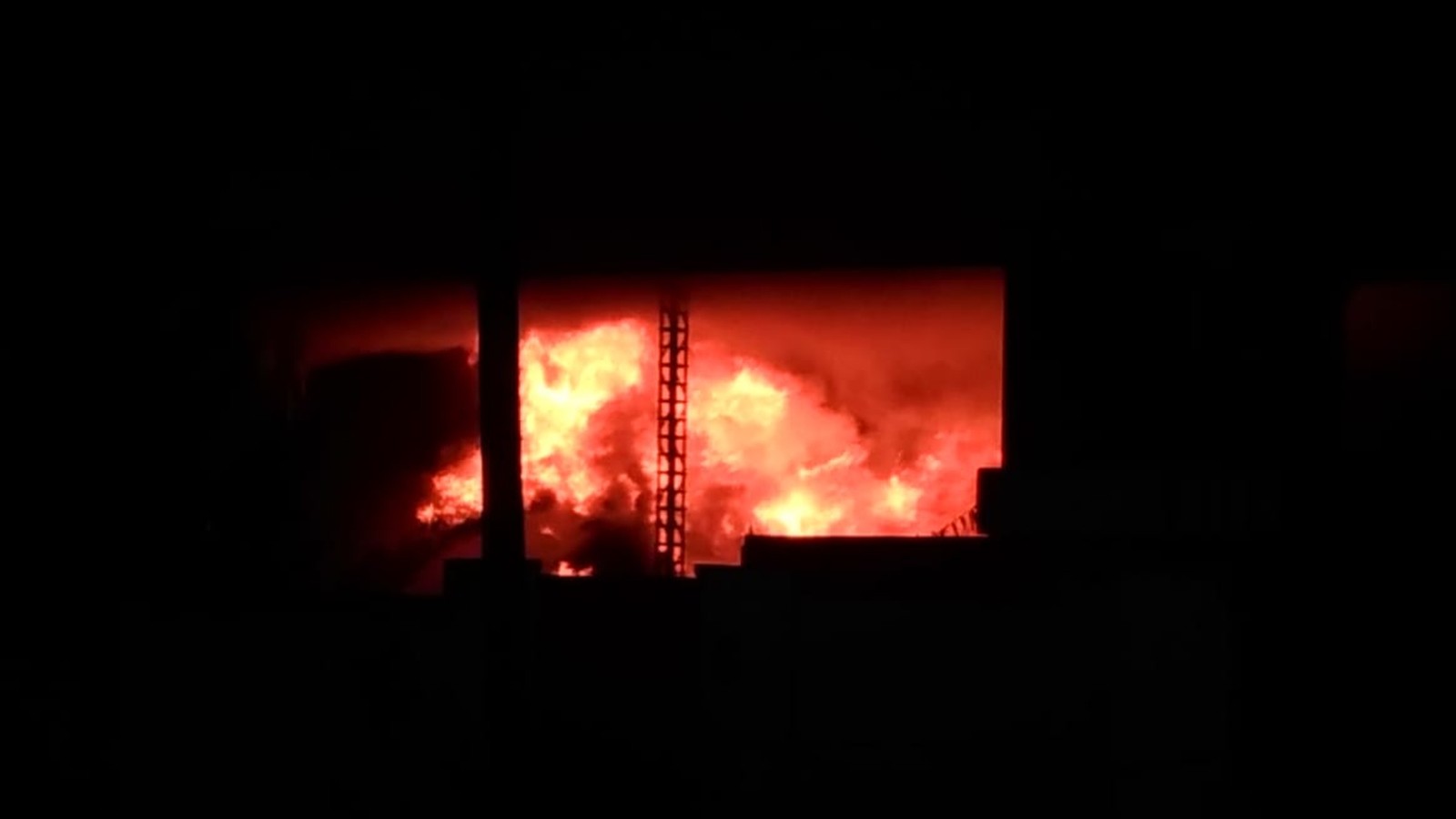 Empresa faz tratamento de ferro e aço; fogo atingiu o local na noite de segunda-feira (3).