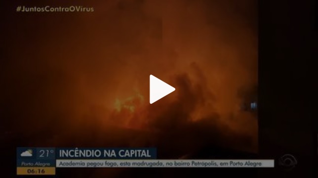 Um incêndio atingiu uma academia no bairro Petrópolis, em Porto Alegre, na madrugada desta segunda-feira (6). As chamas atingiram o local por volta das 4h30.