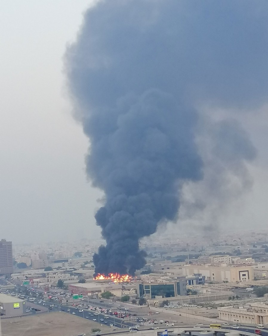 Um grande incêndio atingiu um mercado com dezenas de lojas no emirado de Ajmã, nos Emirados Árabes Unidos, no final da tarde desta quarta-feira.
