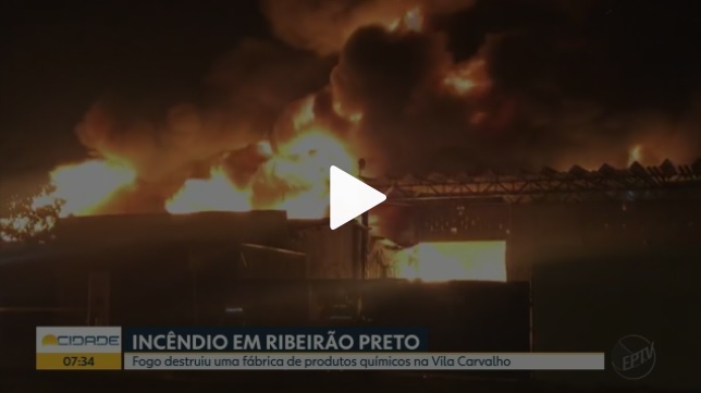 Um incêndio de grandes proporções destruiu uma fábrica de produtos químicos na noite de segunda-feira (24) na Vila Carvalho, zona norte de Ribeirão Preto (SP).