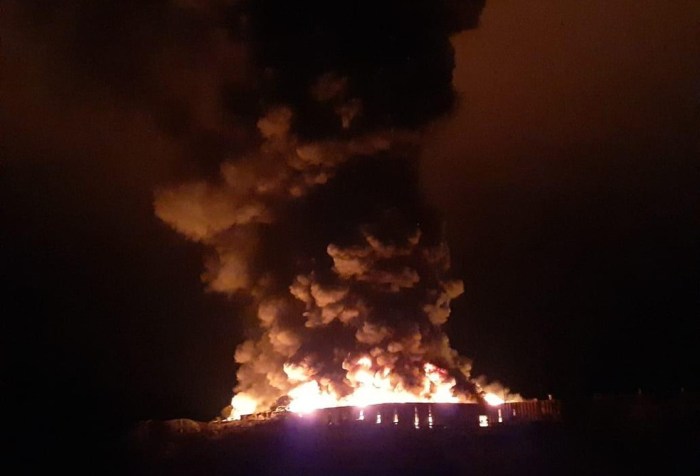 Fogo destruiu três galpões e há risco de explosão. Segundo o Corpo de Bombeiros, ninguém ficou ferido. Um incêndio foi registrado na madrugada desta sexta-feira (24) na fábrica de calçados … Continue lendo Bombeiros combatem incêndio em fábrica de produtos de couro na AMG-440, em Dores de Campos