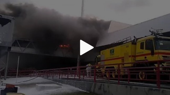 Bombeiros combatem incêndio em fábrica de produtos de couro na AMG-440, em Dores de Campos