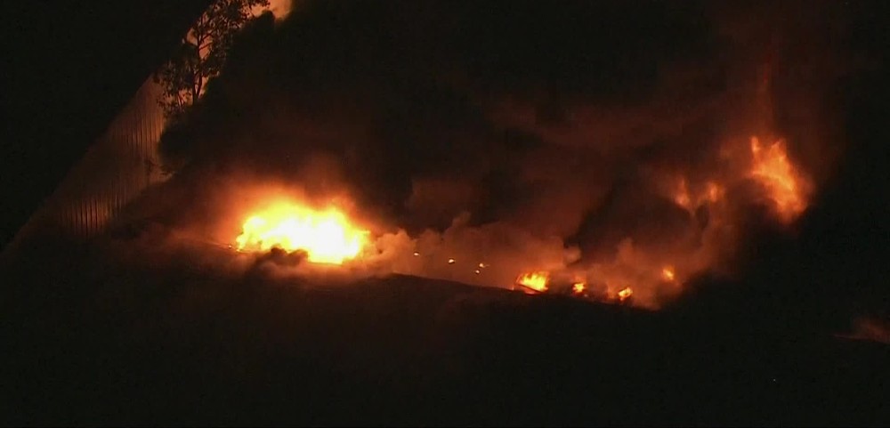 Incêndio de grandes proporções destrói galpão em Cotia, na Grande SP