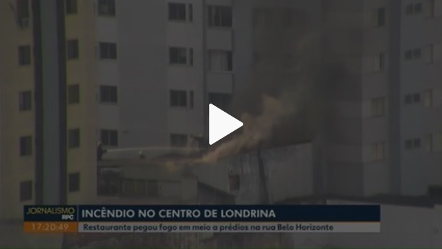 Um incêndio destruiu parte do prédio de um restaurante na Rua Belo Horizonte, que fica no Centro de Londrina, no norte do Paraná, na tarde desta quarta-feira (14).
