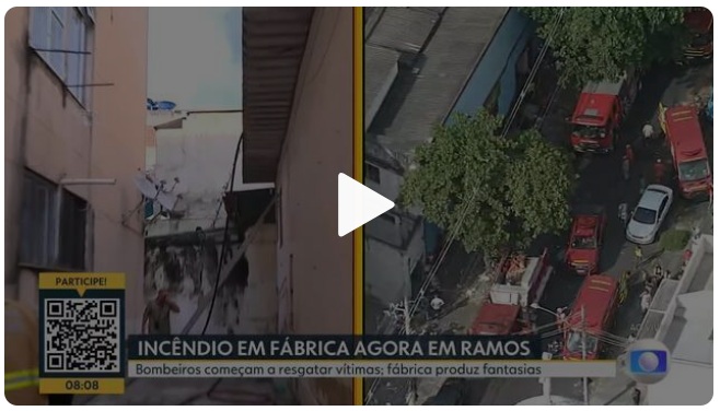 No local funcionava uma fábrica de fantasias de carnaval e uniformes militares. Um incêndio destruiu a Maximus Confecções, em Ramos, na Zona Norte do Rio de Janeiro, na manhã desta … Continue lendo Confecção pega fogo em Ramos, com pessoas presas no imóvel; resgate é dramático, e há 12 em estado grave